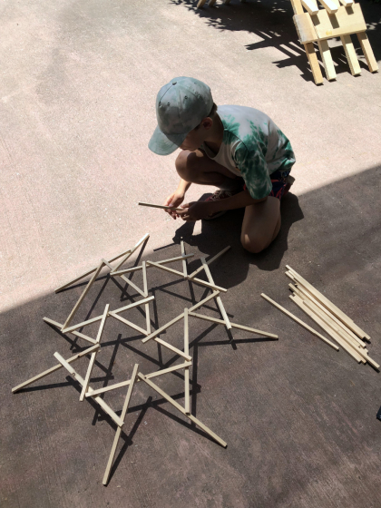 In der Stückage dreht sich alles um die Frage, wie mit kurzen Reststücken Grosses gebaut werden kann. Wie so oft – über kurz oder lang werden altbekannte Fragen in neuen Zusammenhängen wieder aktuell. Das Prinzip des Hebelstabwerks, mit welchem kurzes Bauholz geschickt genutzt werden kann, ist schon lange bekannt und unter anderem von Leonardo da Vinci überliefert. Heute gilt die Technik erneut als spannender Lösungsansatz, um Restmaterial wiederzuverwenden und Ressourcen zu schonen. So ist das Holzlager der Stückage der passende Ort, um das Konstruktionsprinzip, bei dem sich Holzstäbe gegenseitig tragen und durch das Eigengewicht stabilisieren, zu entdecken und auszuprobieren.